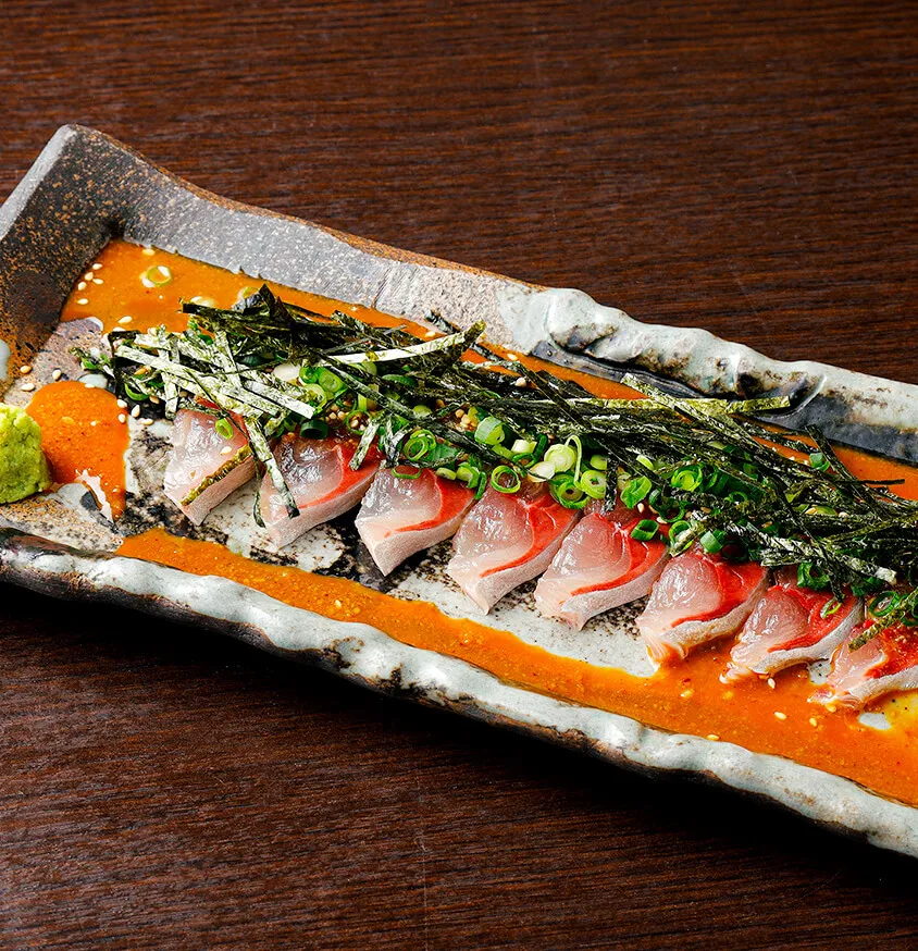 旬魚の盛合せや博多もつ鍋、黒豚しゃぶしゃぶなど人気メニューを盛り込んだコースは2時間飲み放題付き4000円~。6000円コースは馬刺や黒毛和牛など贅沢な内容となっています。