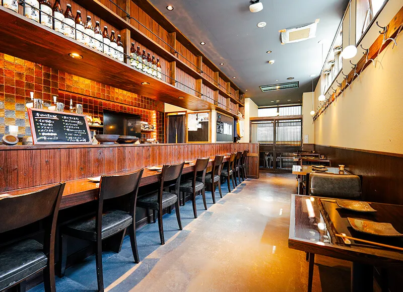 店内に入ると、まず目に飛び込んでくるのはズラリと並ぶ日本酒や焼酎。